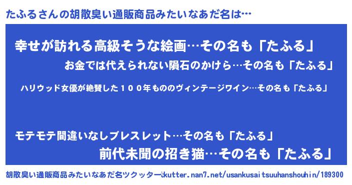 | 意味不明あだ名 | 『住所不定無職たふる(9歳)』 |