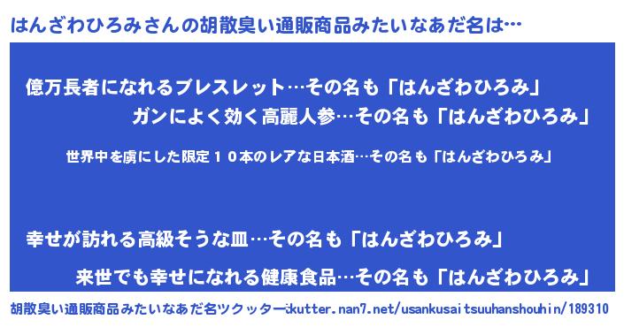 | 男性向けラノベタイトル風あだ名 | 『転生したらはんざわひろみだった件』 |