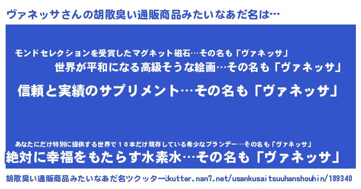 | ヘコむあだ名 | 『ヴァを』『ヴァネッサ(遠い目)』 |