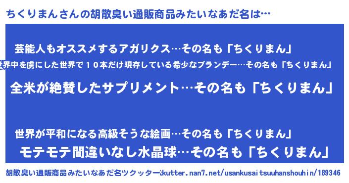 | 意味不明あだ名 | 『とにかく怪しいちくりまん』 |