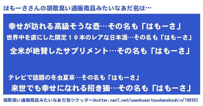 | ヘコむあだ名 | 『はもを』『牛乳』『はもーさ(苦笑)』 |