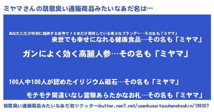 | 恥ずかしいあだ名 | 『ミヤマデラックス』『プリティーミヤマ』 |