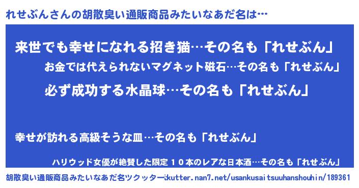 | 男性向けラノベタイトル風あだ名 | 『れせぶんの憂鬱』『魔弾の王とれせぶん』 |