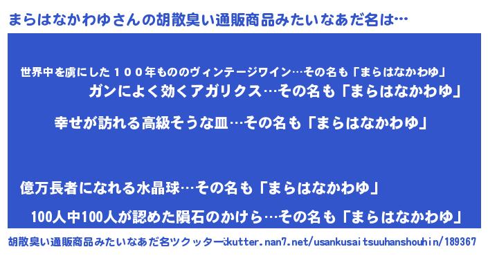 | 伝説のあだ名 | 『秘められし陰陽師まらはなかわゆ』 |
