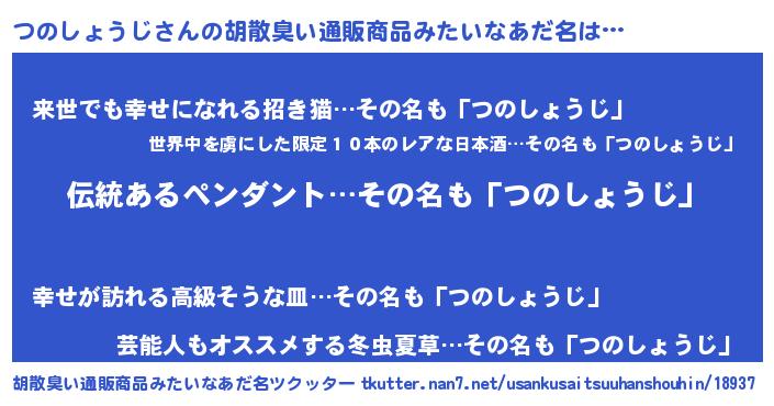 | 意味不明あだ名 | 『とにかく怪しいつのしょうじ』 |