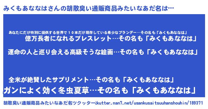 | 意味不明あだ名 | 『みくもあななはフォーエバー』 |