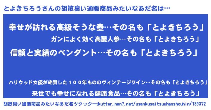 | 意味不明あだ名 | 『とにかく怪しいとよきちろう』 |