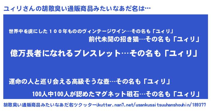 | ヘコむあだ名 | 『ユィにー』『ユィリ(小並感)』 |