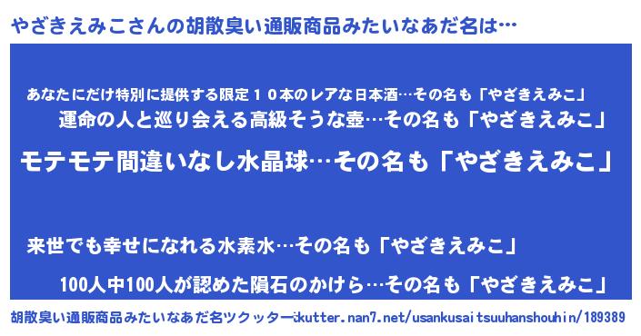 | ヘコむあだ名 | 『やざにゅー』『なまこ酢』 |