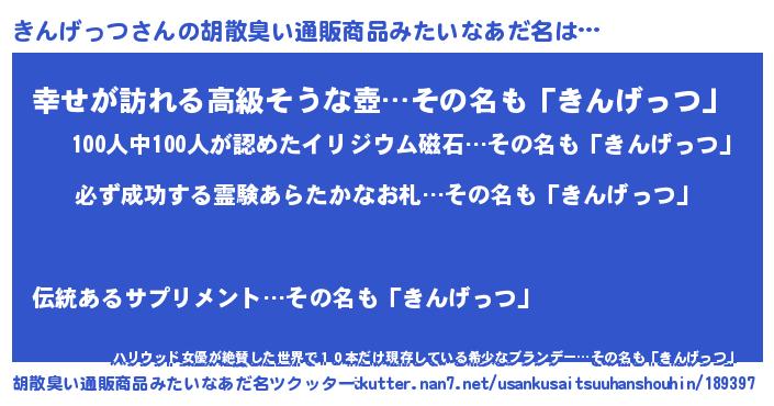 | 伝説のあだ名 | 『伝説のスナイパーきんげっつ』 |