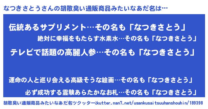 | 肩書あだ名 | 『なつきさとう閣下』『なつきさとう塾長』 |