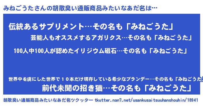 | ヒーロー風カッコイイあだ名 | 『正義の使者みねごうた』『幻影騎士ミネ』 |