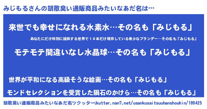 | ヘコむあだ名 | 『みじふぇ~』『みじもる(遠い目)』 |