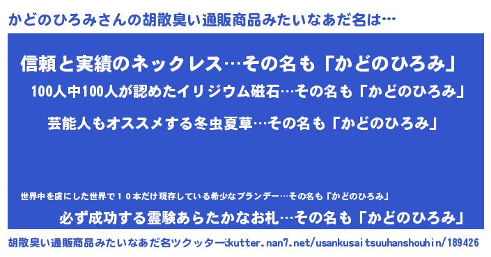 | ヘコむあだ名 | 『かどっちょ』『かどにゅー』『牛乳』 |