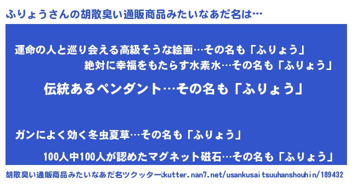 | 意味不明あだ名 | 『とにかく怪しいふりょう』 |