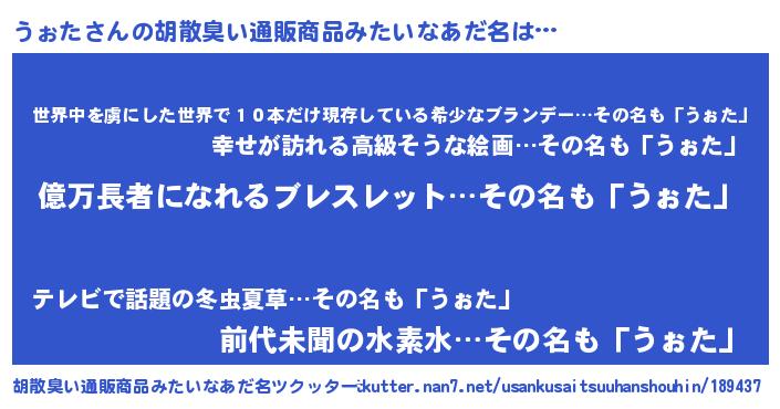 | 意味不明あだ名 | 『ペロリンうぉた』『永久保存うぉた』 |