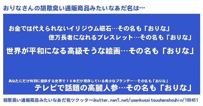 | 意味不明あだ名 | 『おりなフォーエバー』『自称おりな』 |
