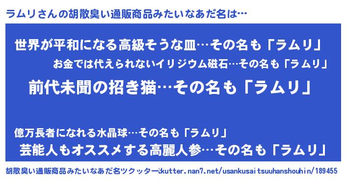| 意味不明あだ名 | 『永久保存ラムリ』『ラムリフォーエバー』 |
