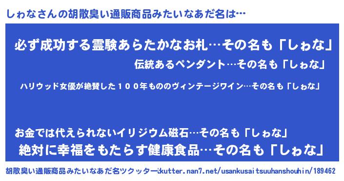 | 欧米人風あだ名 | 『ダレノガレしゎな』『マイケルしゎな』 |