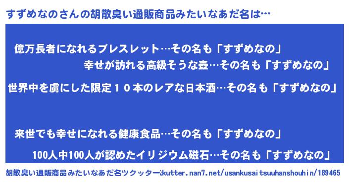 | ヒーロー風カッコイイあだ名 | 『仮面スズダー』『スーパースズメナノ』 |
