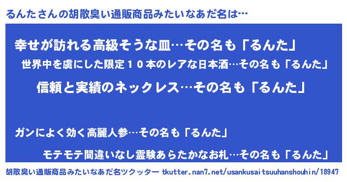 | 意味不明あだ名 | 『とにかく怪しいるんた』 |