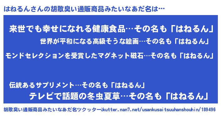 | ヒーロー風カッコイイあだ名 | 『天空の使者はねるん』『ネオハネルン』 |
