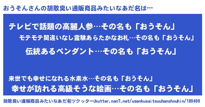| 欧米人風あだ名 | 『ウサインおうそん』 |