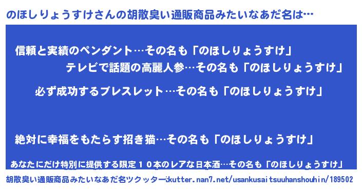 | 肩書あだ名 | 『のほしりょうすけ社長』 |