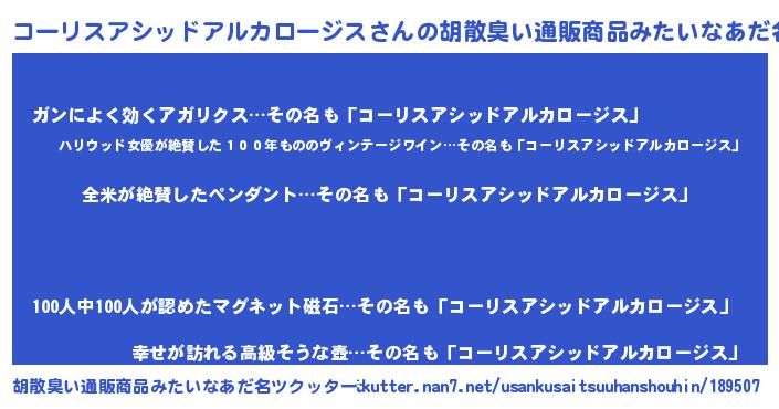 | 意味不明あだ名 | 『とにかく怪しいコーリスアシッドアルカロージス』 |