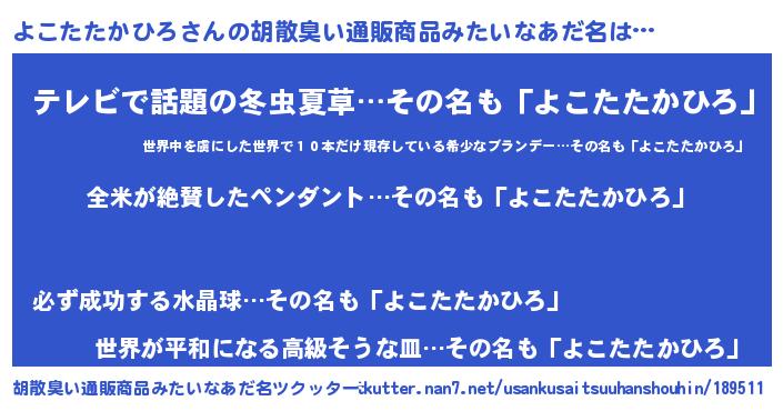 | 肩書あだ名 | 『よこたたかひろ大将』 |
