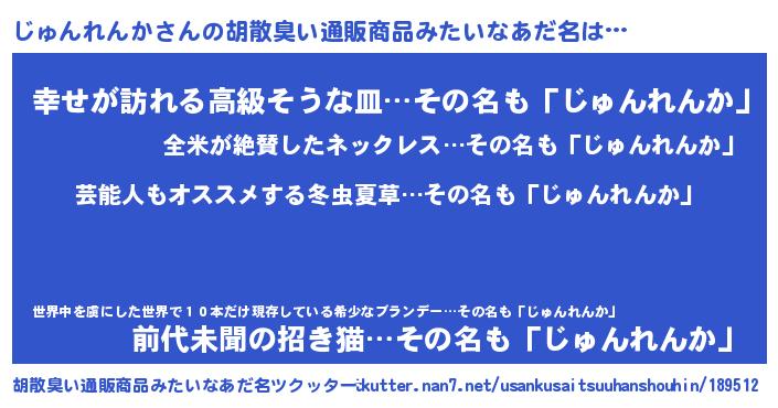 | 意味不明あだ名 | 『自称じゅんれんか』 |