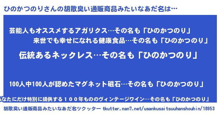 | ヘコむあだ名 | 『ひのっ子』『ひのかつのり(爆)』 |