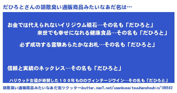 | ヘコむあだ名 | 『だひっふぃ~』『だひろと(笑)』 |