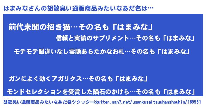 | ヘコむあだ名 | 『はまもー』『はまみな(笑)』『牛乳』 |