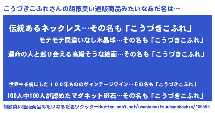 | 男性向けラノベタイトル風あだ名 | 『うちのこうづきこふれが世界を掌握している!』 |