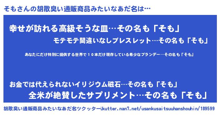 | ヒーロー風カッコイイあだ名 | 『仮面ソモダー』『ウルトラそもマン』 |