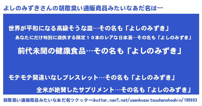 | 意味不明あだ名 | 『永久保存よしのみずき』 |