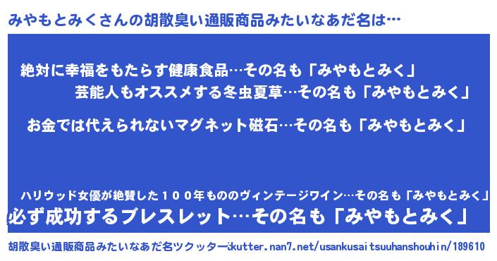 | ヘコむあだ名 | 『みやもとみく(笑)』『みやにゅー』 |