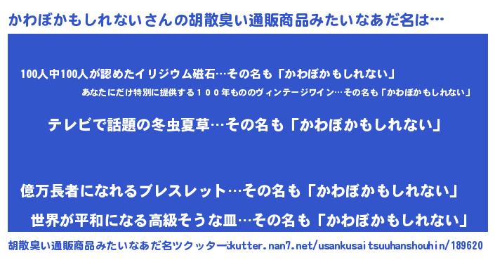 | ヒーロー風カッコイイあだ名 | 『サイバー戦士カワボカモシレナイ』 |