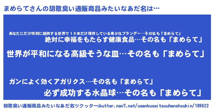 | 肩書あだ名 | 『まめらて国家主席』『まめらて少将』 |