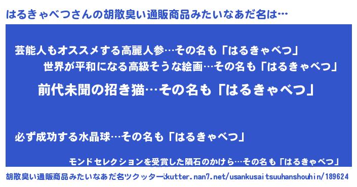 | ヘコむあだ名 | 『はるきゃべつ(小並感)』『酢こんぶ』 |