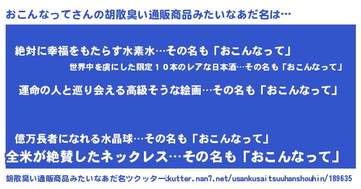 | 欧米人風あだ名 | 『アンジェラ・おこんなって』 |