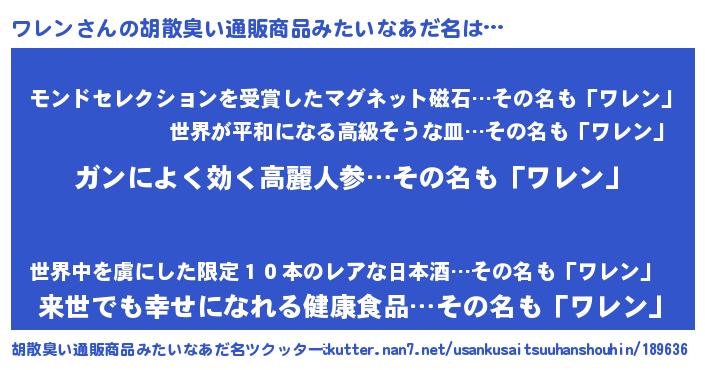 | ヘコむあだ名 | 『ワレン(小並感)』『酢こんぶ』 |