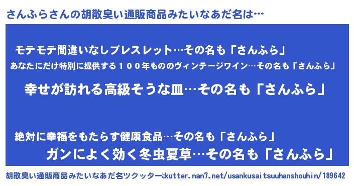 | 意味不明あだ名 | 『さんふらフォーエバー』『自称さんふら』 |