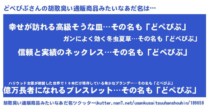 | 意味不明あだ名 | 『とにかく怪しいどぺぴぷ』 |