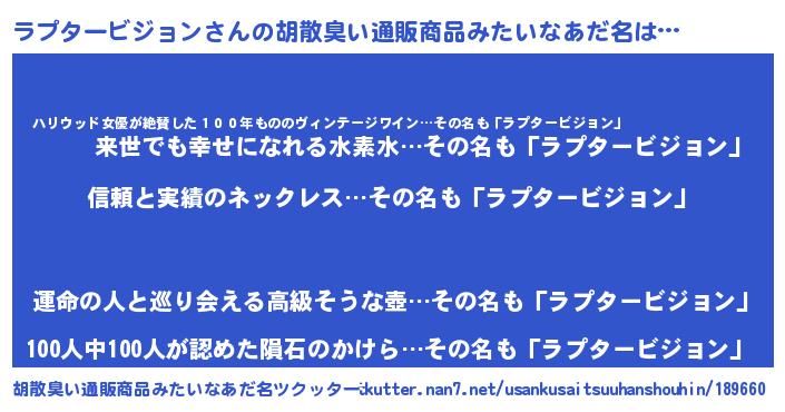 | 意味不明あだ名 | 『とにかく怪しいラプタービジョン』 |