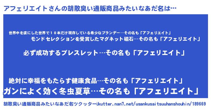 | 男性向けラノベタイトル風あだ名 | 『アフェリエイトの憂鬱』 |
