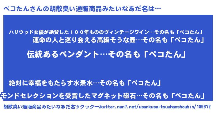 | 意味不明あだ名 | 『とにかく怪しいペコたん』 |