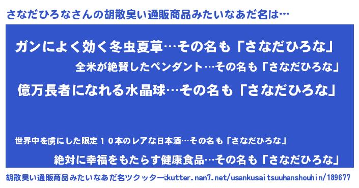| ヘコむあだ名 | 『さなにゅー』『さなだひろな(小並感)』 |