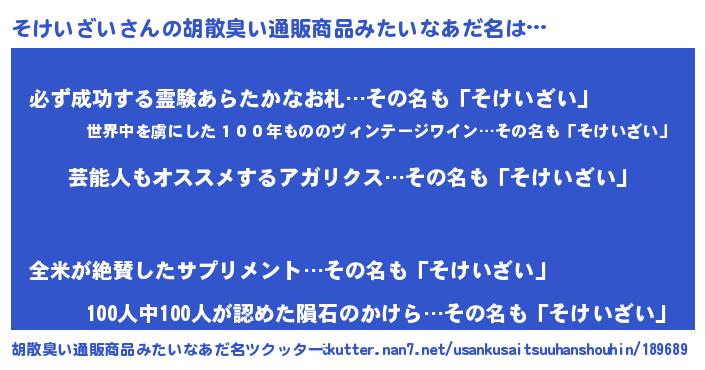 | 意味不明あだ名 | 『自称そけいざい』『ペロリンそけいざい』 |